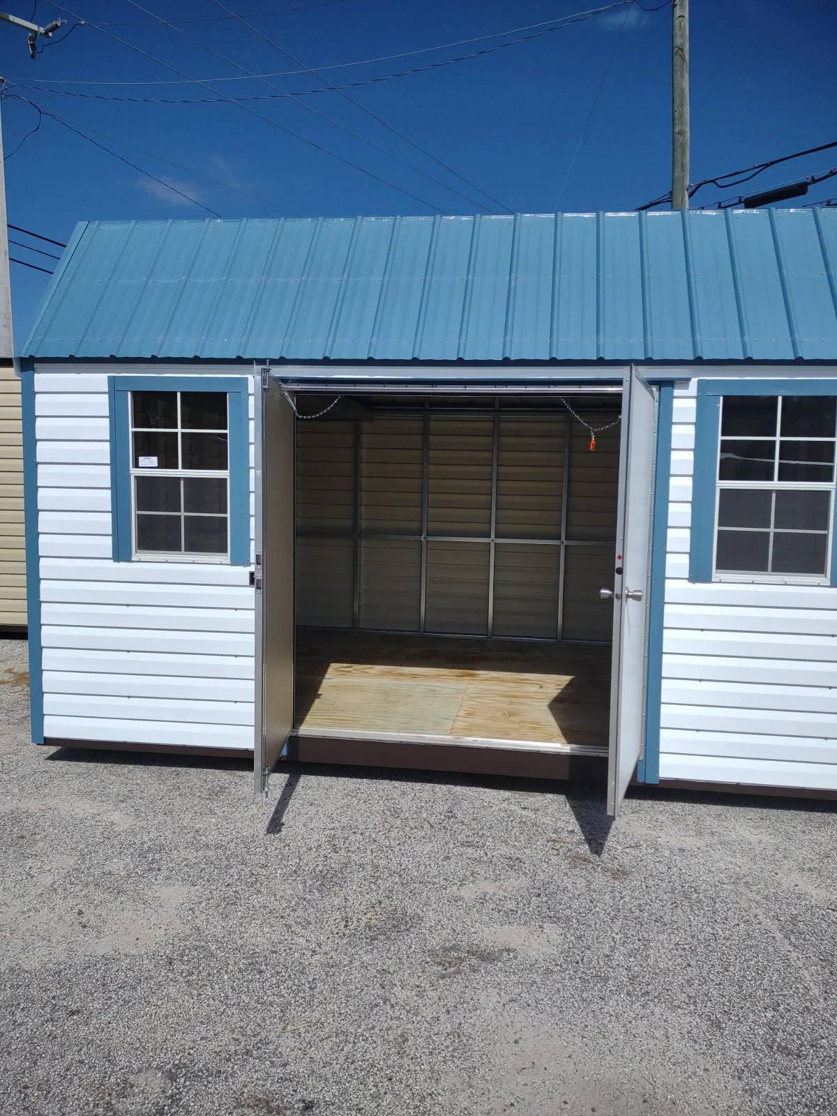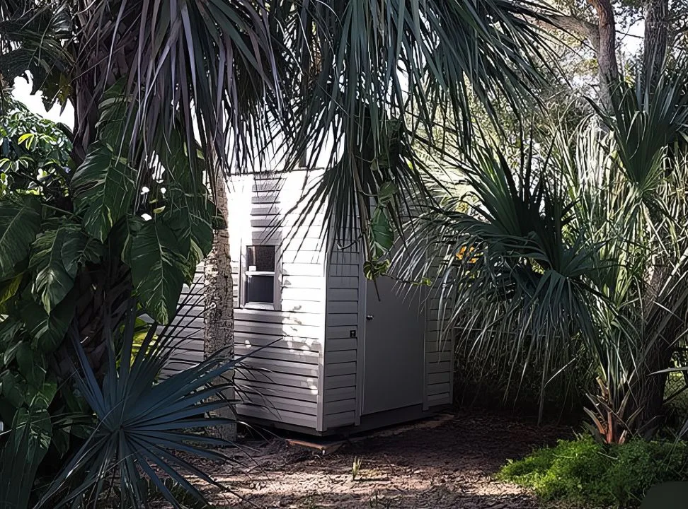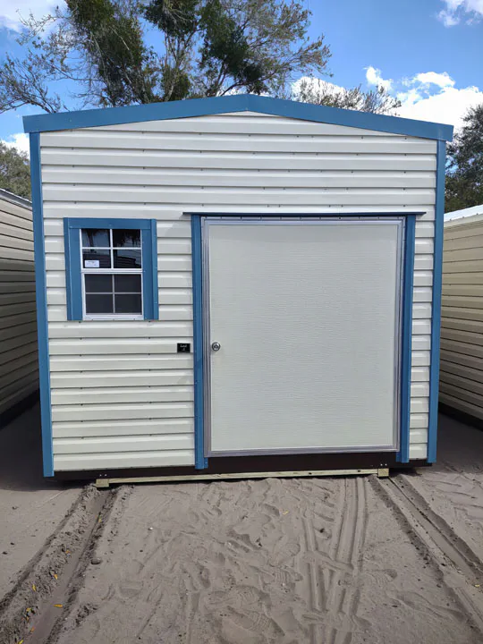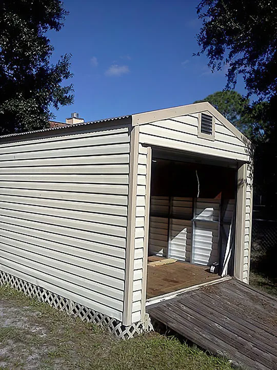 Our sheds come with lights, outlets and wiring! Built for Florida weather, 180mph wind strength.