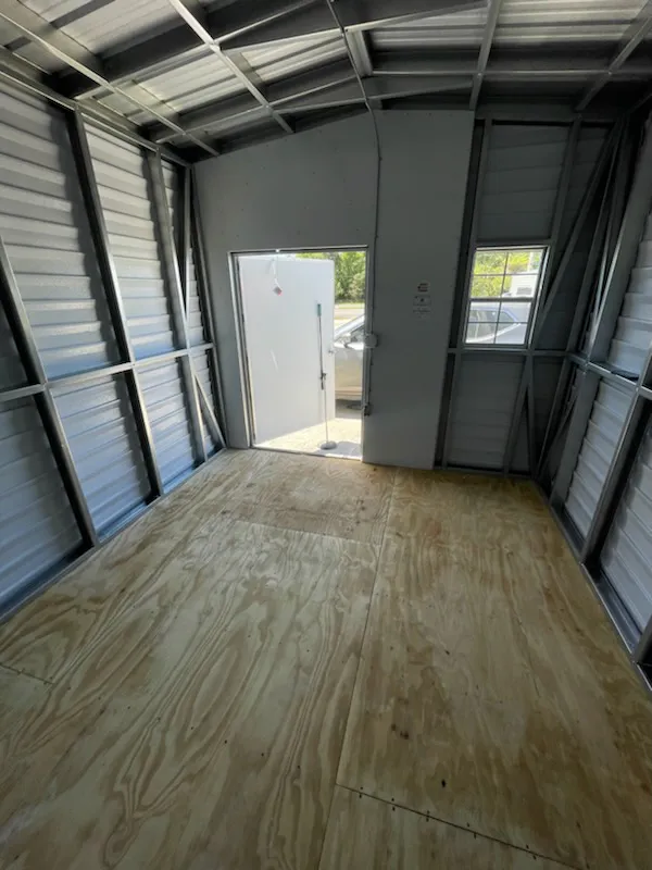 Double-Wide Portable Building by Lark Serious Space. Seamless Span. Designed with pre-engineered trusses for a full open-span interior—no posts, no interruptions, just maximum usable space. Available in sizes from 16′×16′ up to 24′×60′. Need more? Ask us about Triple-Wideoptions.