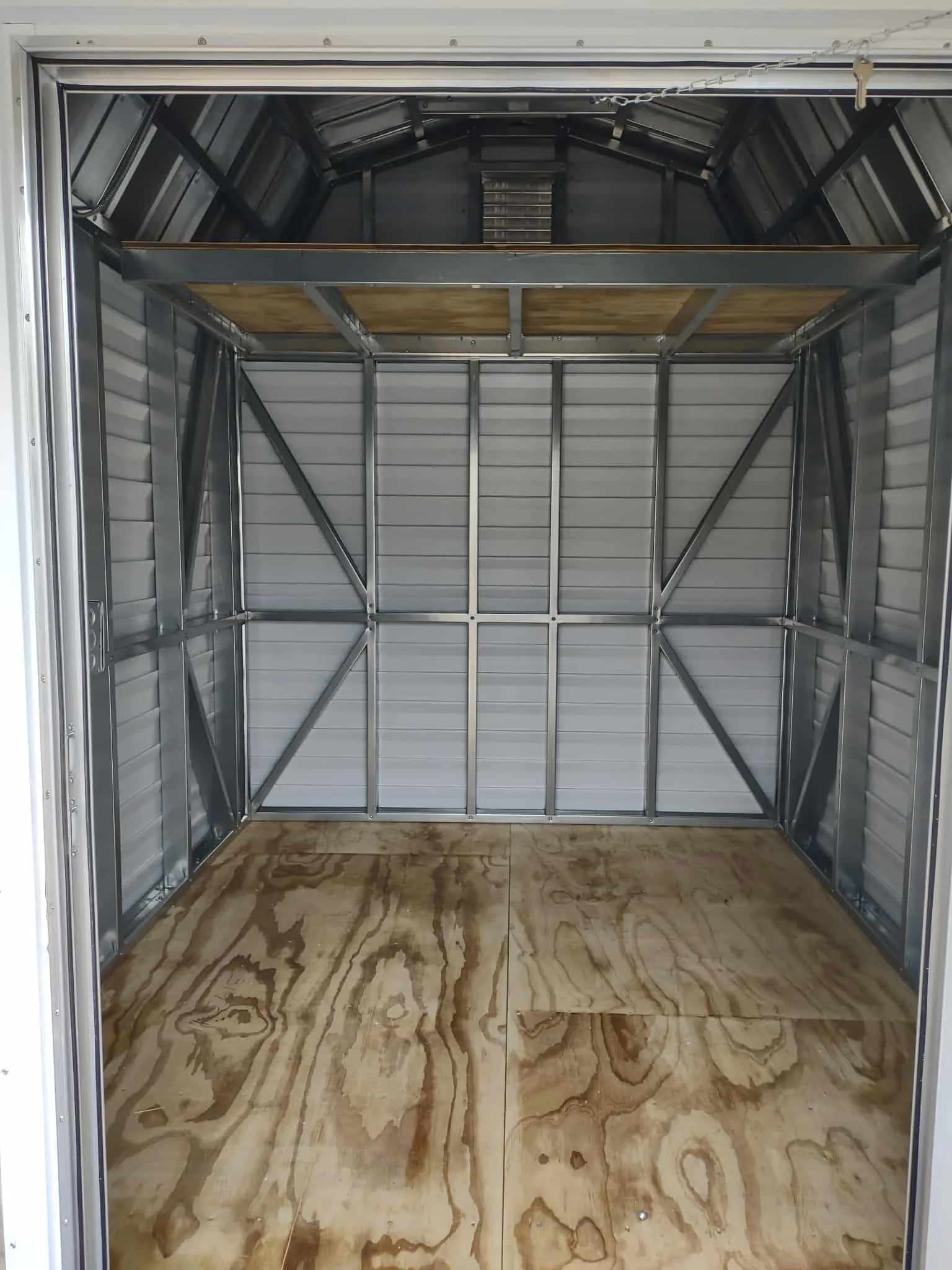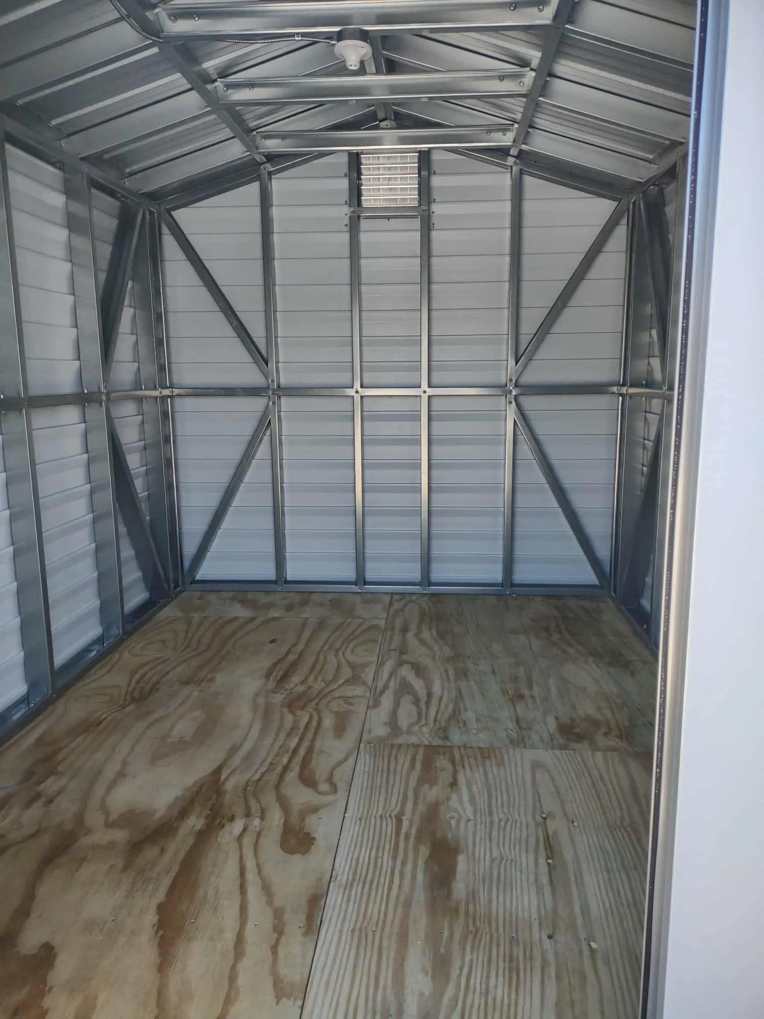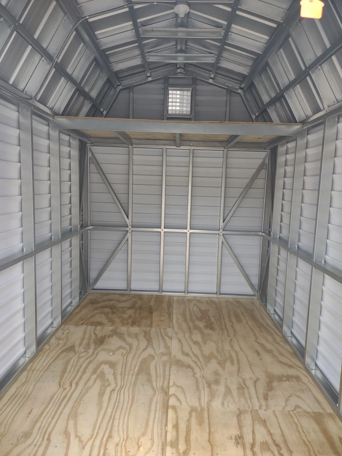On the lot! This is a 8 x 12 Lofted barn with a 46 x 80 door, 2 vents, 1 light 1 outlet. Also has a very handy 4 ft loft!