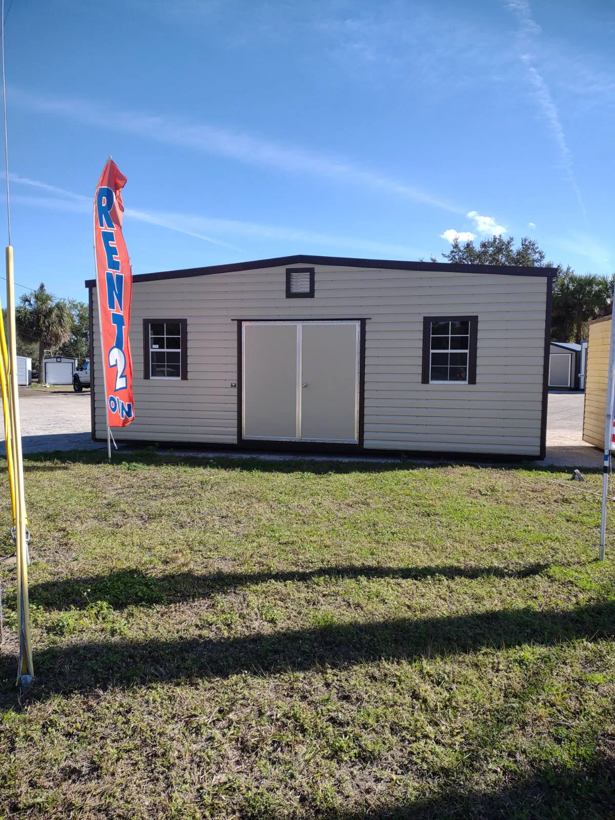 On the lot! New 12 x 20 shed. Double doors with 4 windows, lots of natural light. 2 lights and 2 outlets. Stop by or give us a call today!