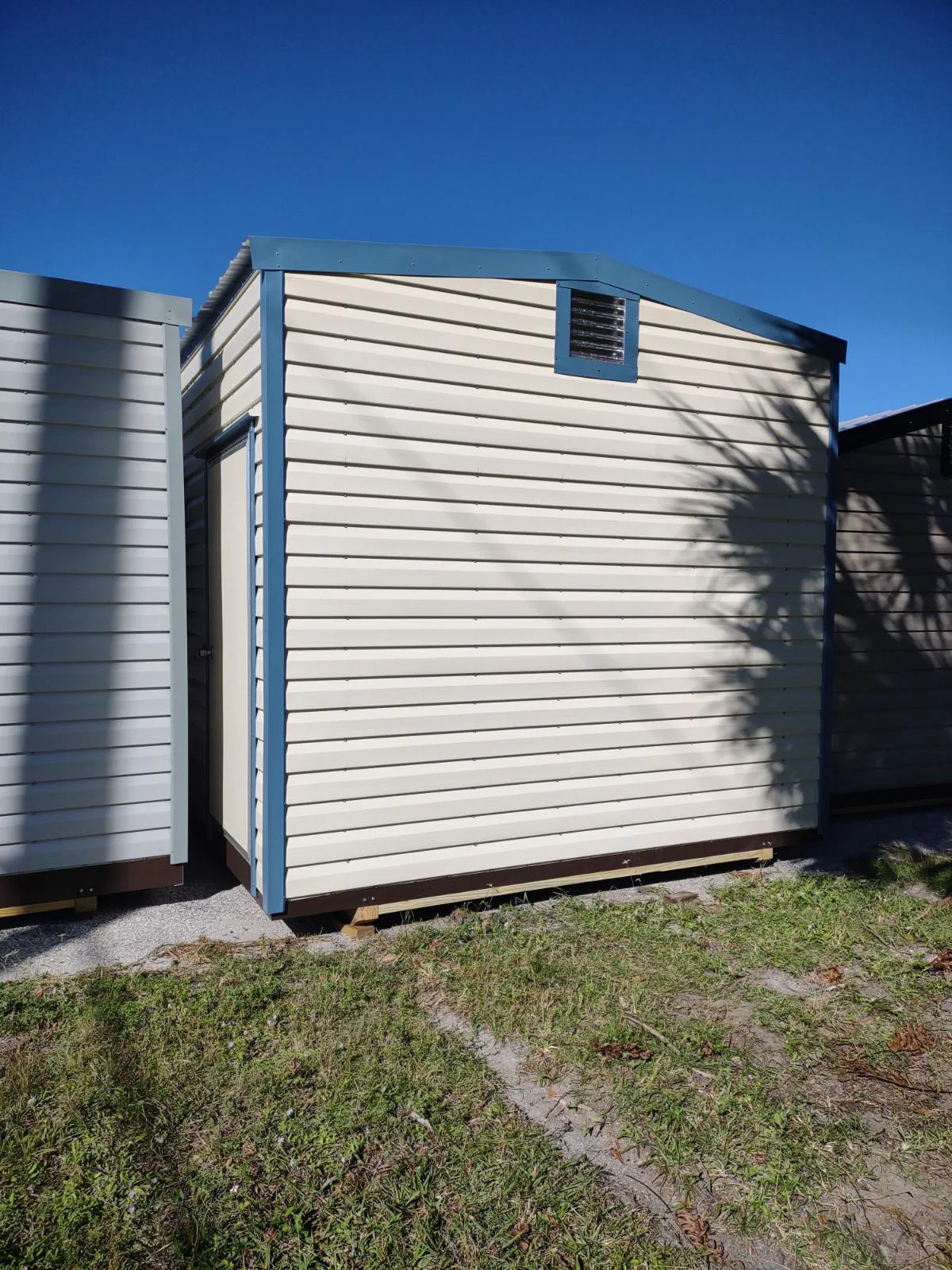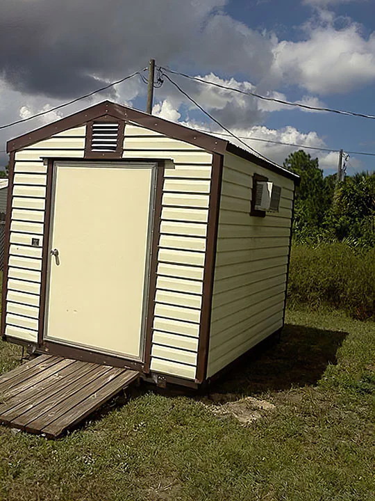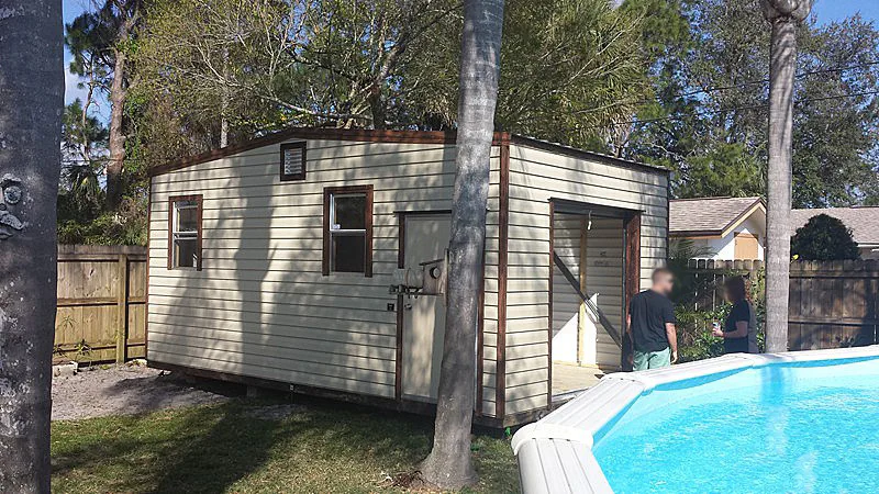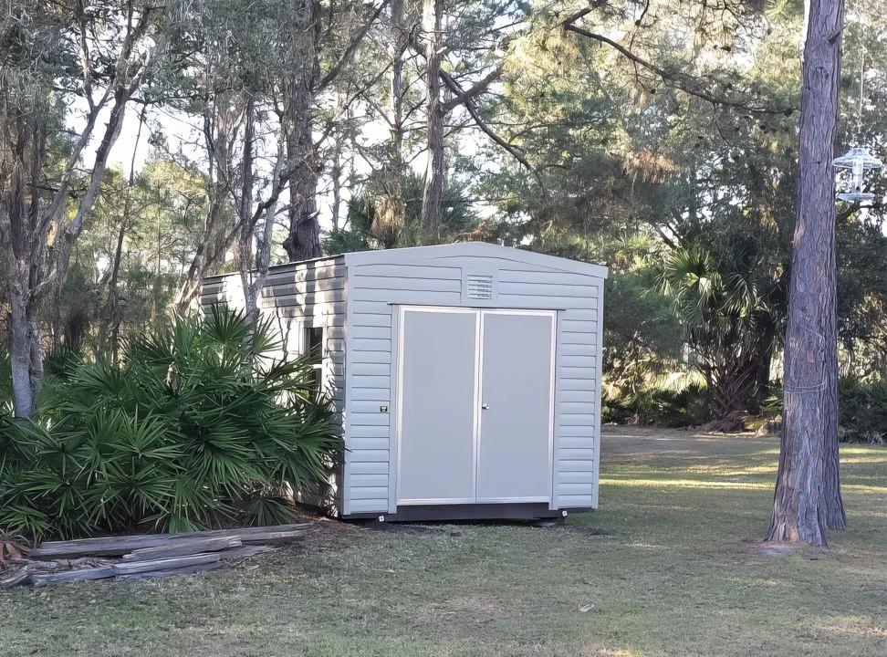 Our sheds come with lights, outlets and wiring! Built for Florida weather, 180mph wind strength.