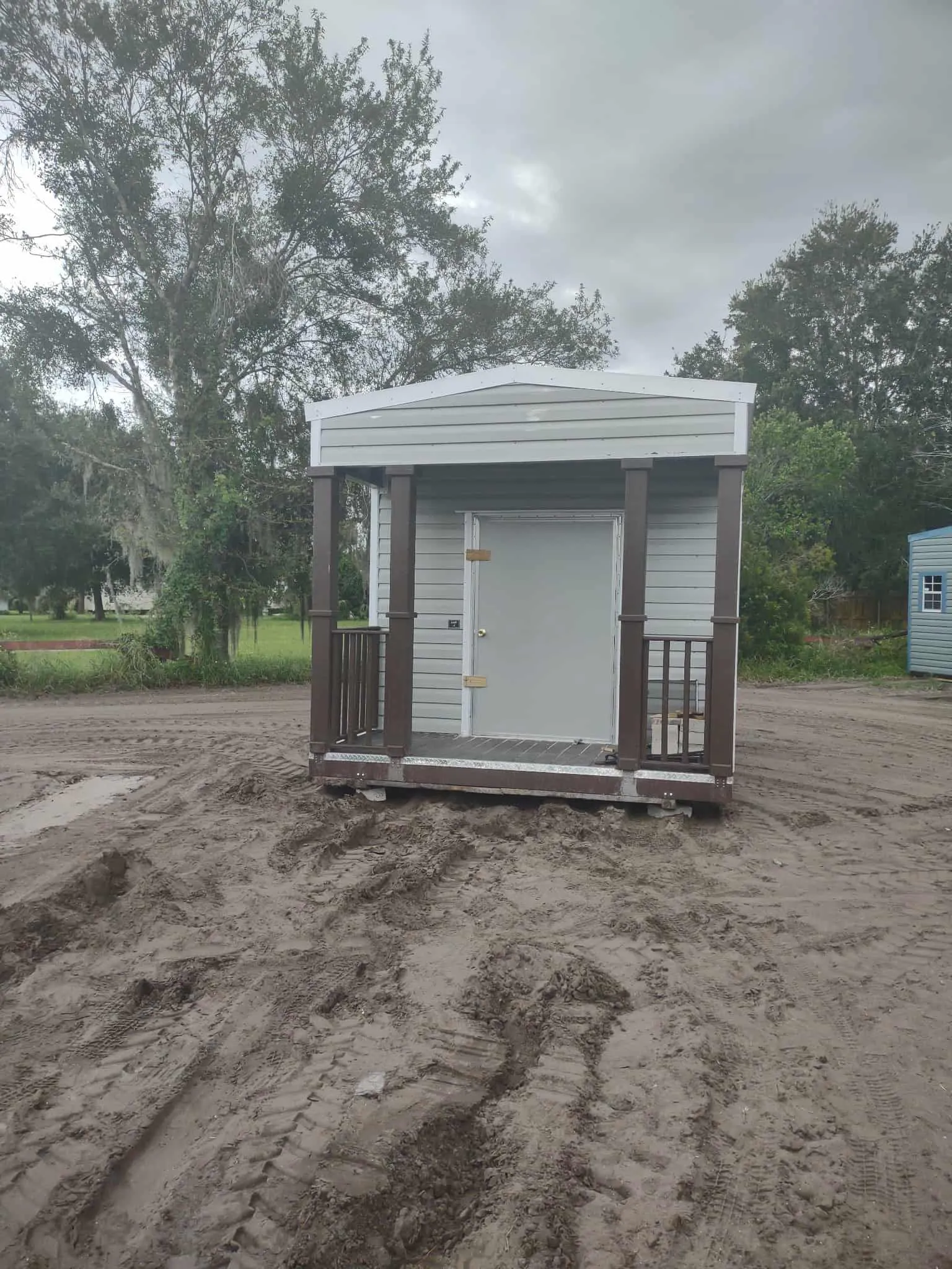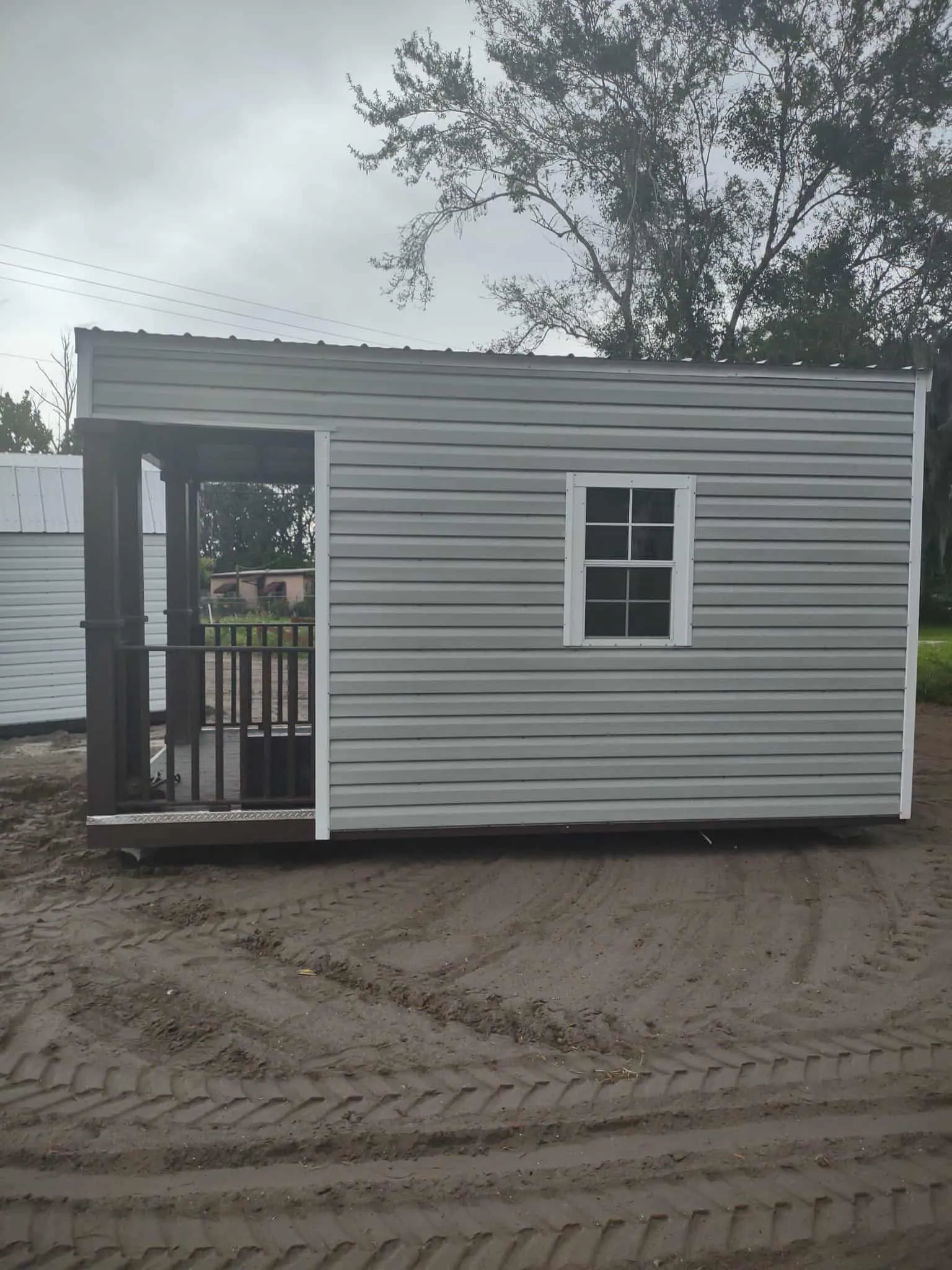 Here's a used 10 x 16 Playhouse Endgable, with 2 windows, 2 lights and 2 outlets. 46 x 72 door 4 ft porch. Price is only $4,935.