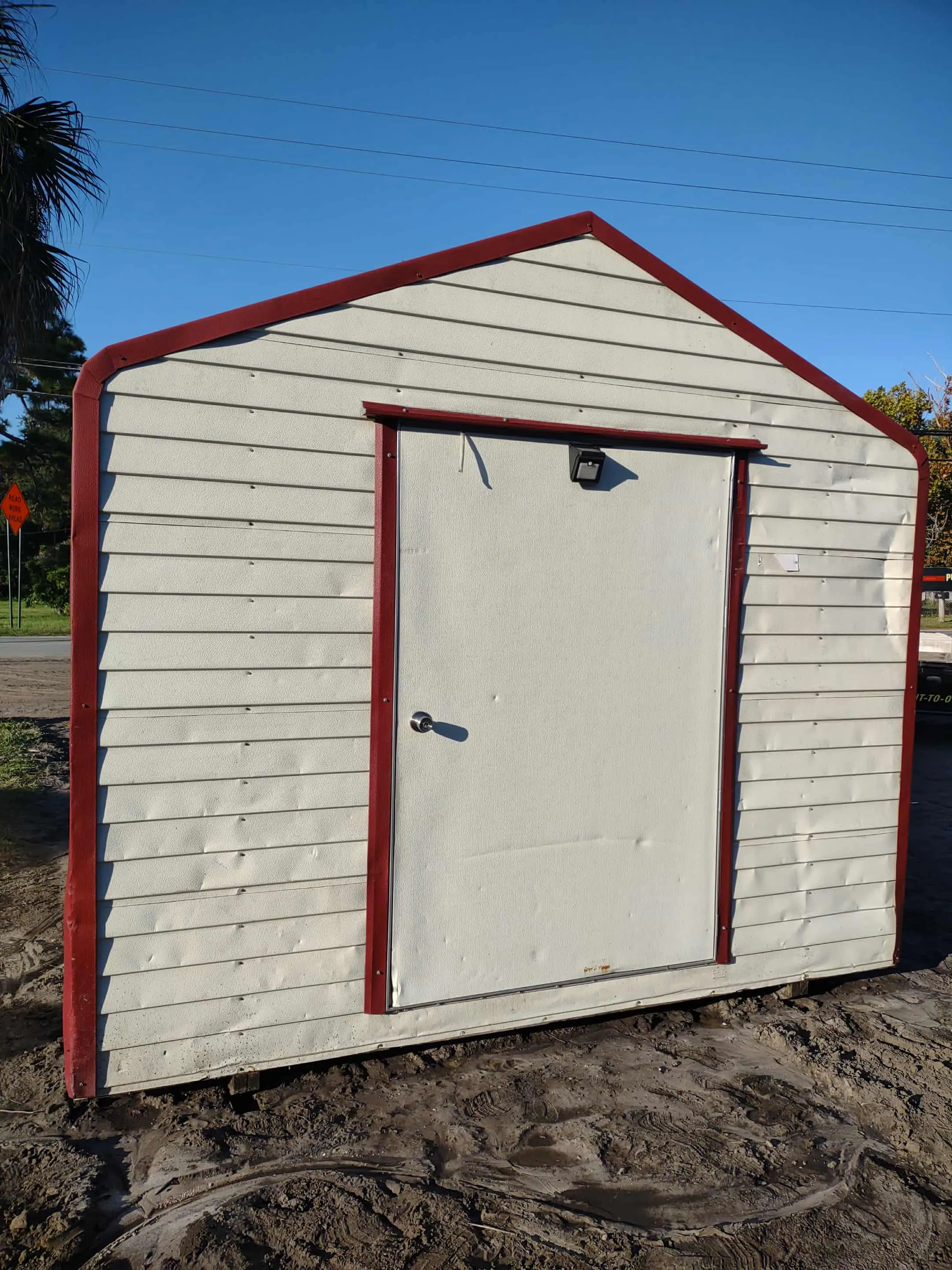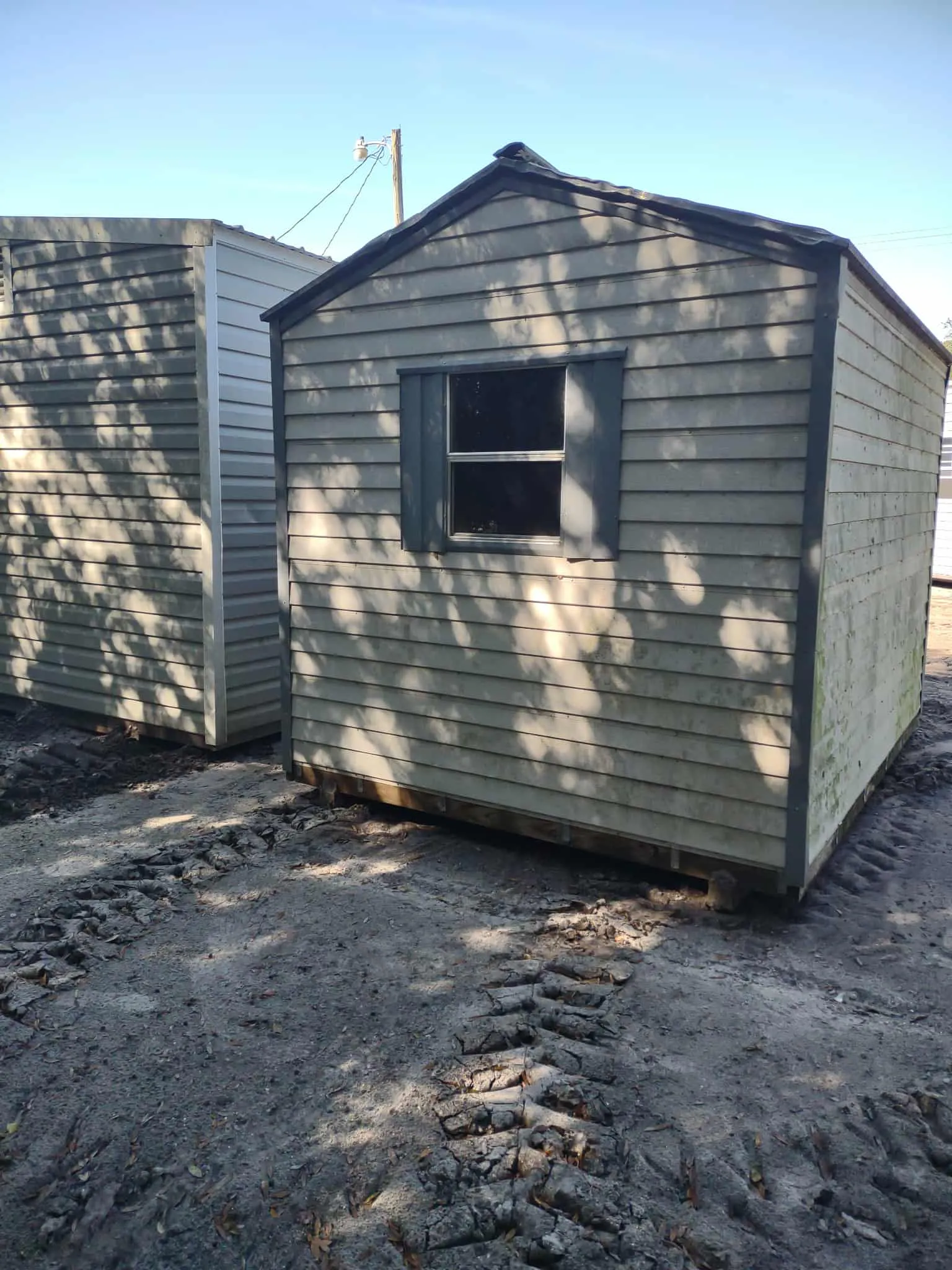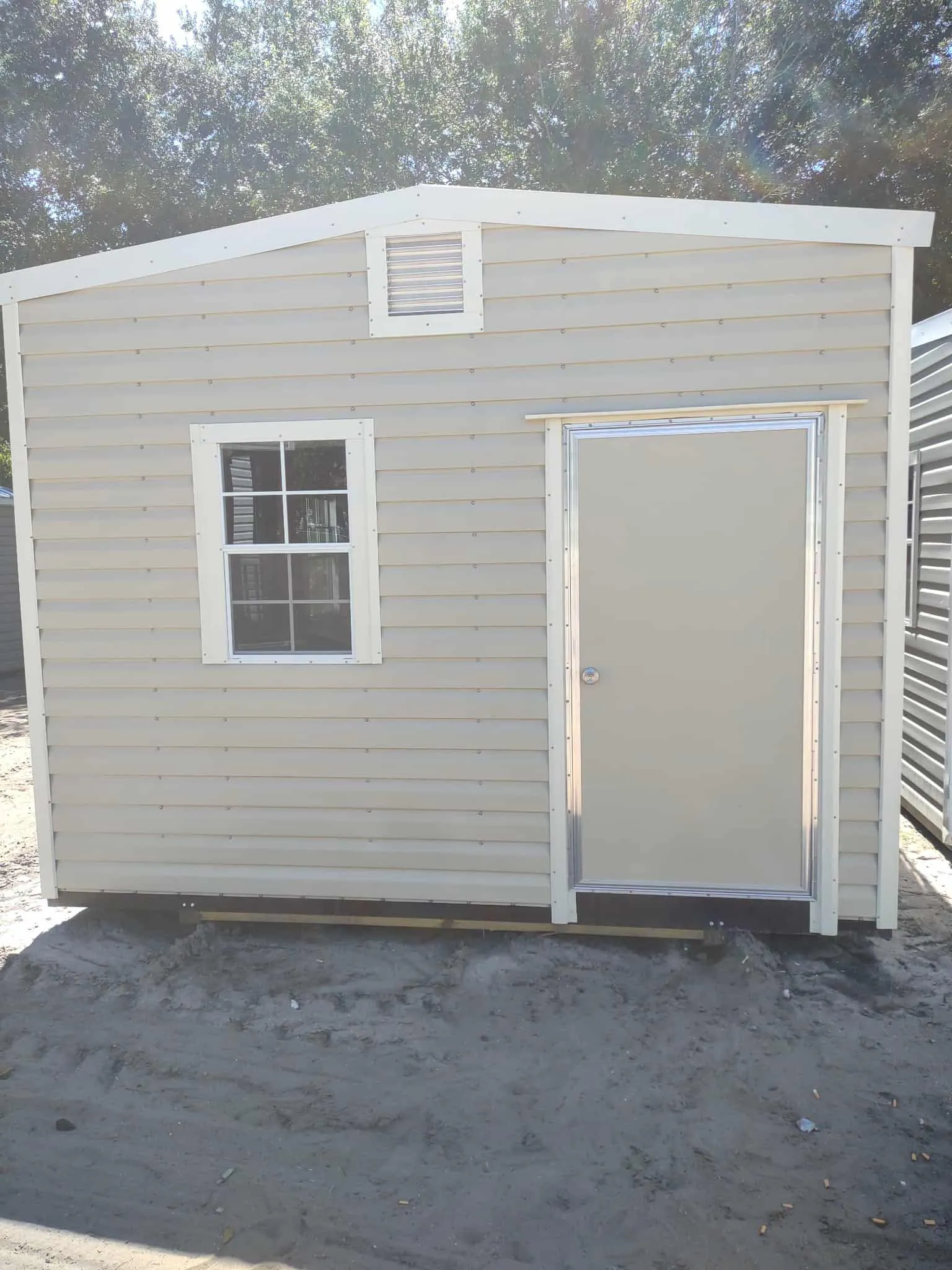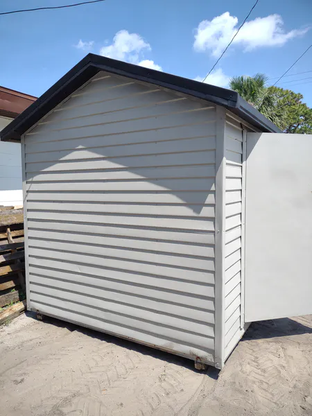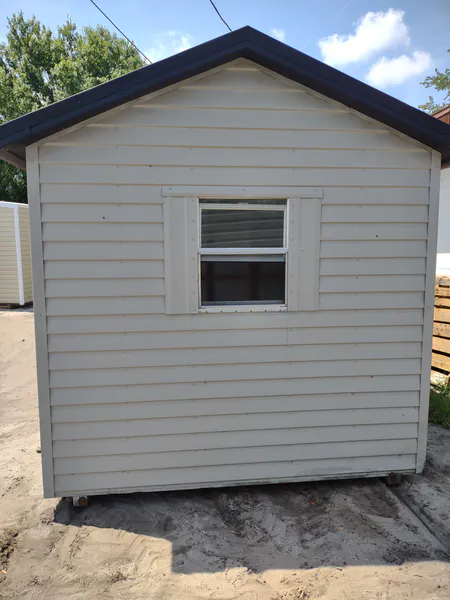 SOLD! Used 8 x 10 Shed with 1 window, built in shelf, 46 door. Price of $2500 includes free delivery and professional installation