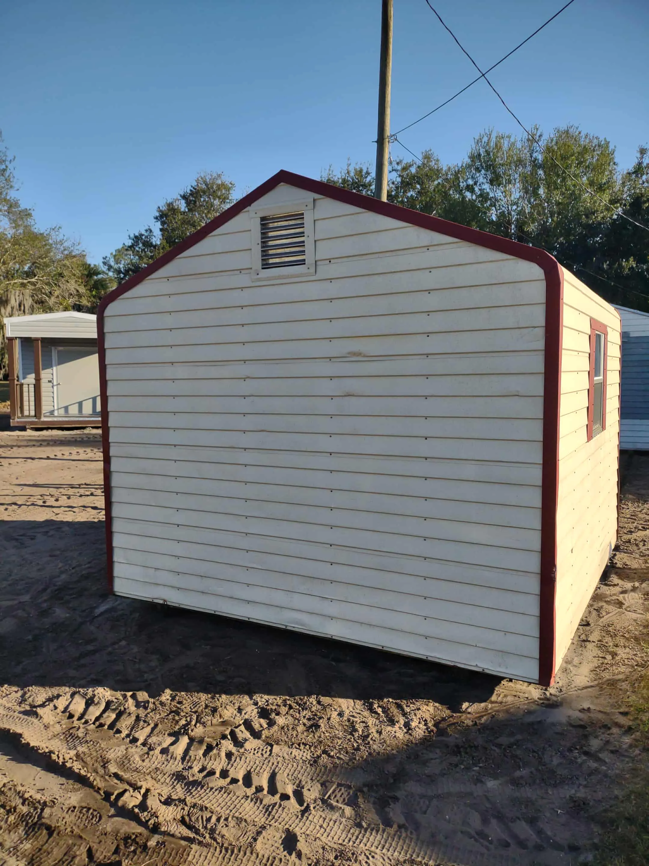 This is a used 12 x 12 preowned shed. Has 2 windows, 2 vents, 1 light/outlet. $4,000 with free professional delivery and installation! Stop by or give us a call today!