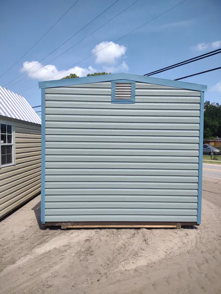 Here's a used 8 X 12 Smithbuilt Boxed Eave shed, with 1 window, 1 light and 1 outlet. 46-inch man door. Price $2700. Stop by and see us today!
