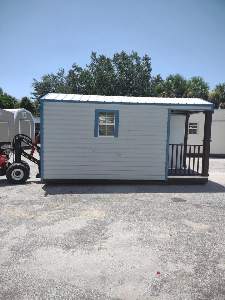 This is a used 6 x 16 Playhouse with a 4 ft porch. 2 windows, 1 vent, 1 light and outlet. Free delivery and professional installation. $4,455! Stop by or give us a call today!
