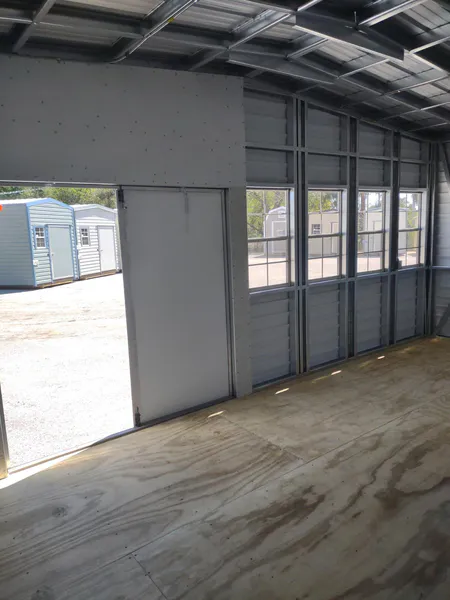 SOLD: On the lot! New 12 x 20 shed. Double doors with 4 windows, lots of natural light. 2 lights and 2 outlets. Stop by or give us a call today!