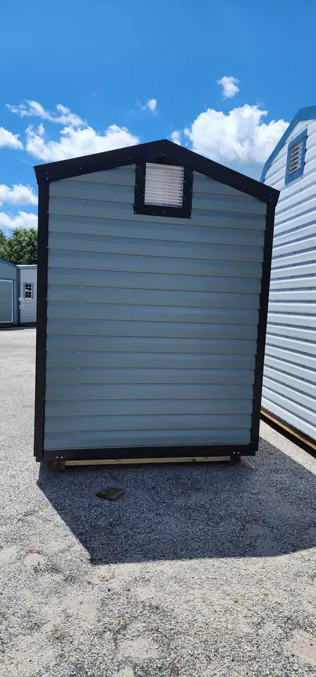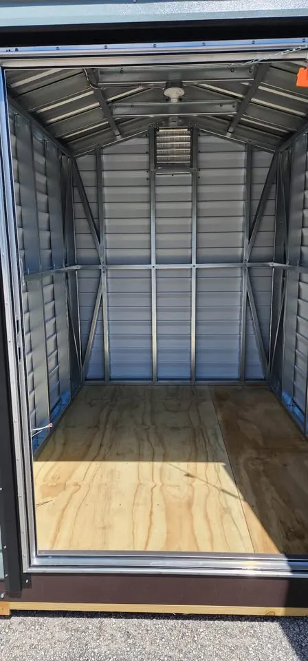 On the lot! This is a 8 x 12 Lofted barn with a 46 x 80 door, 2 vents, 1 light 1 outlet. Also has a very handy 4 ft loft!